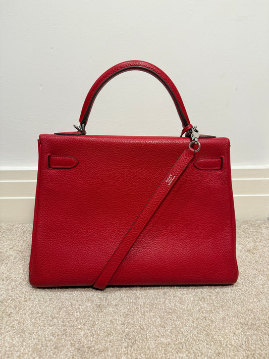 Hermès Kelly 32 leather handbag Rouge Casaque